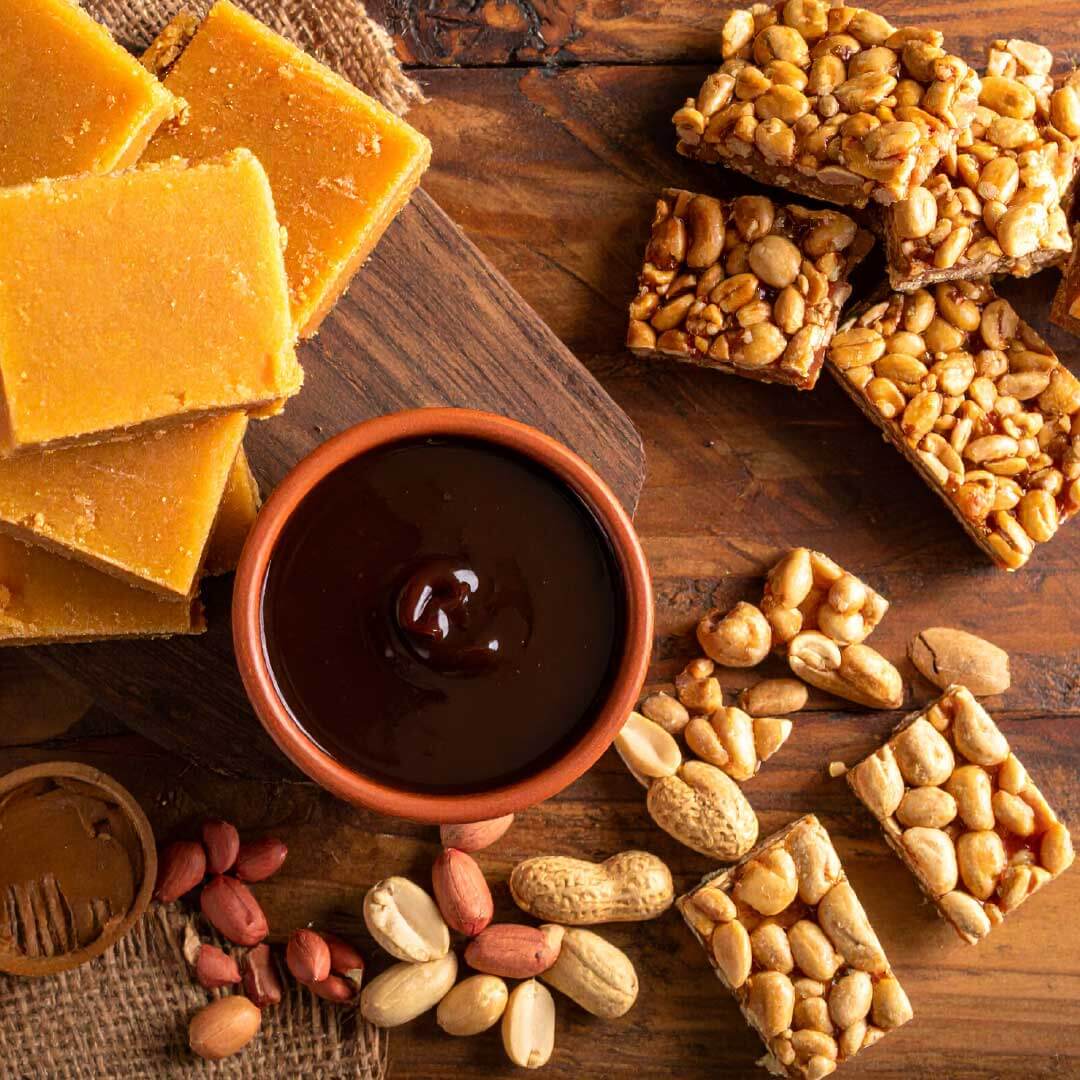 Outros produtos coloniais: rapadura, melado, pé de moleque e uma variedade de quitutes da culinária tradicional gaúcha.